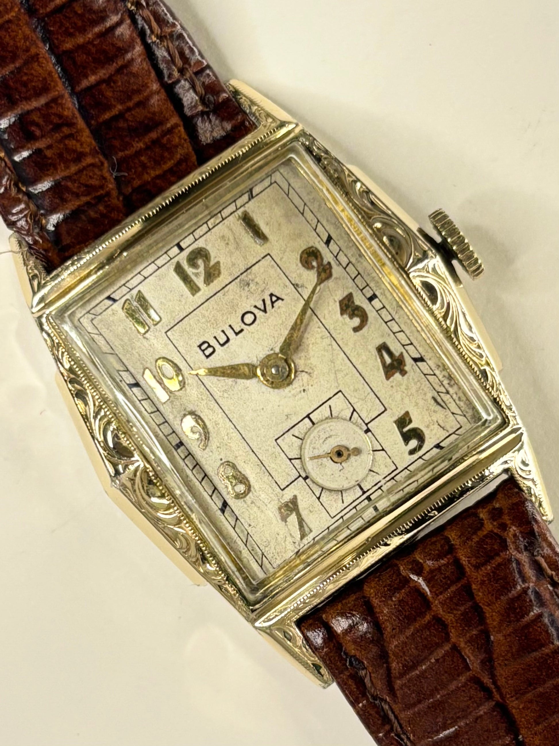 BULOVA Vintage 1950’s *+BOX&PAPERS* 10K Rolled Gold Men’s Manual Sub-Seconds Tank Watch - 10BM