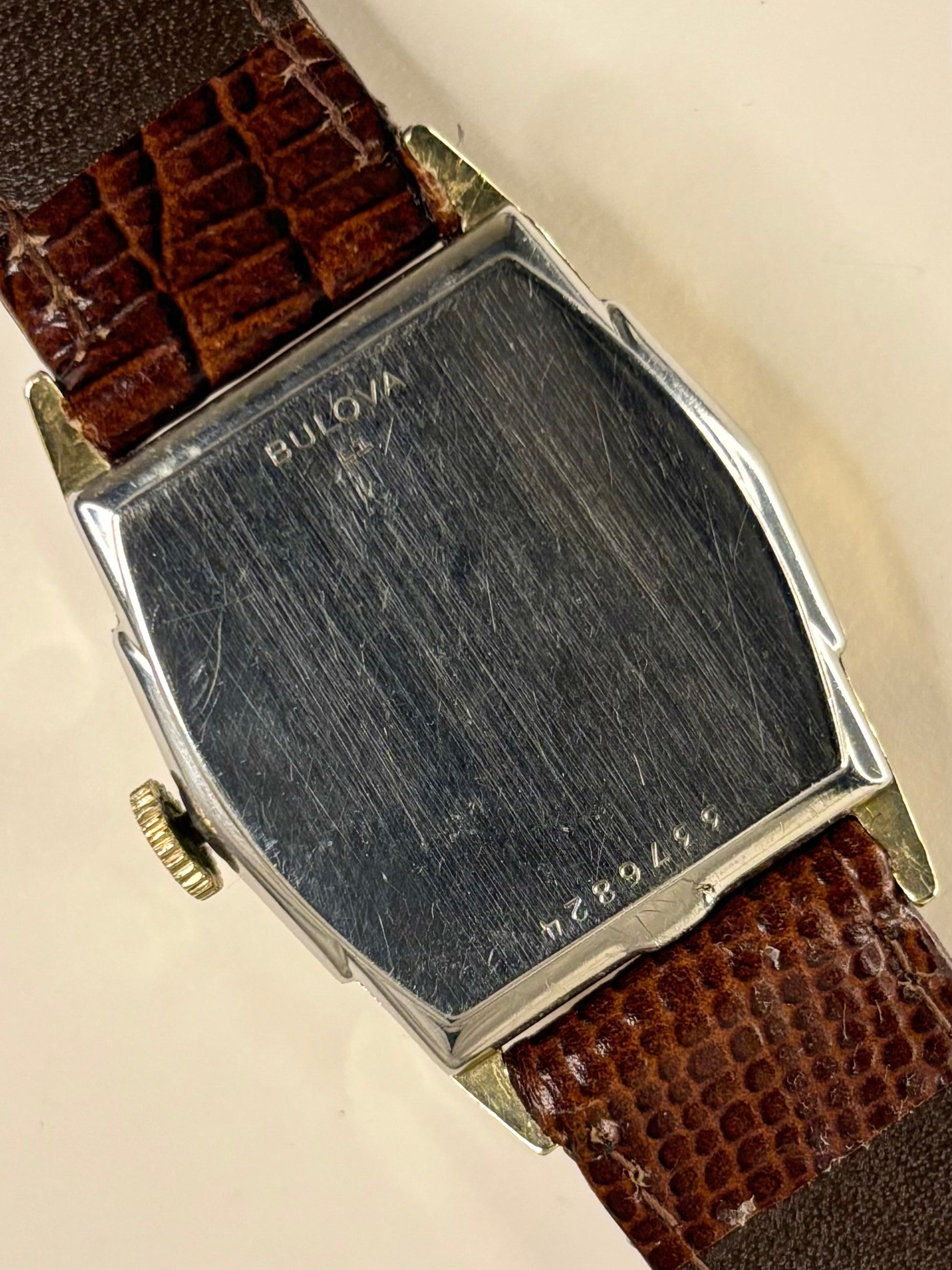 Here we have a gorgeous Bulova dress watch dating back to the 1950’s. As seen in the photos, both the dial and the Rolled Gold case are in great condition. The Bulova manual movement is keeping time to around 60 seconds over a 24 hour period. This watch also comes with its original box and sales manuals! Make this beautiful Bulova dress watch yours today!