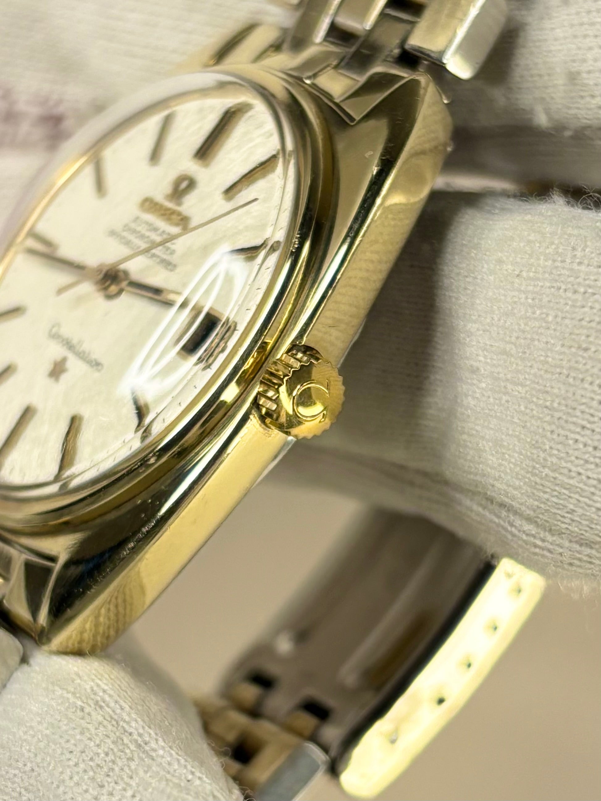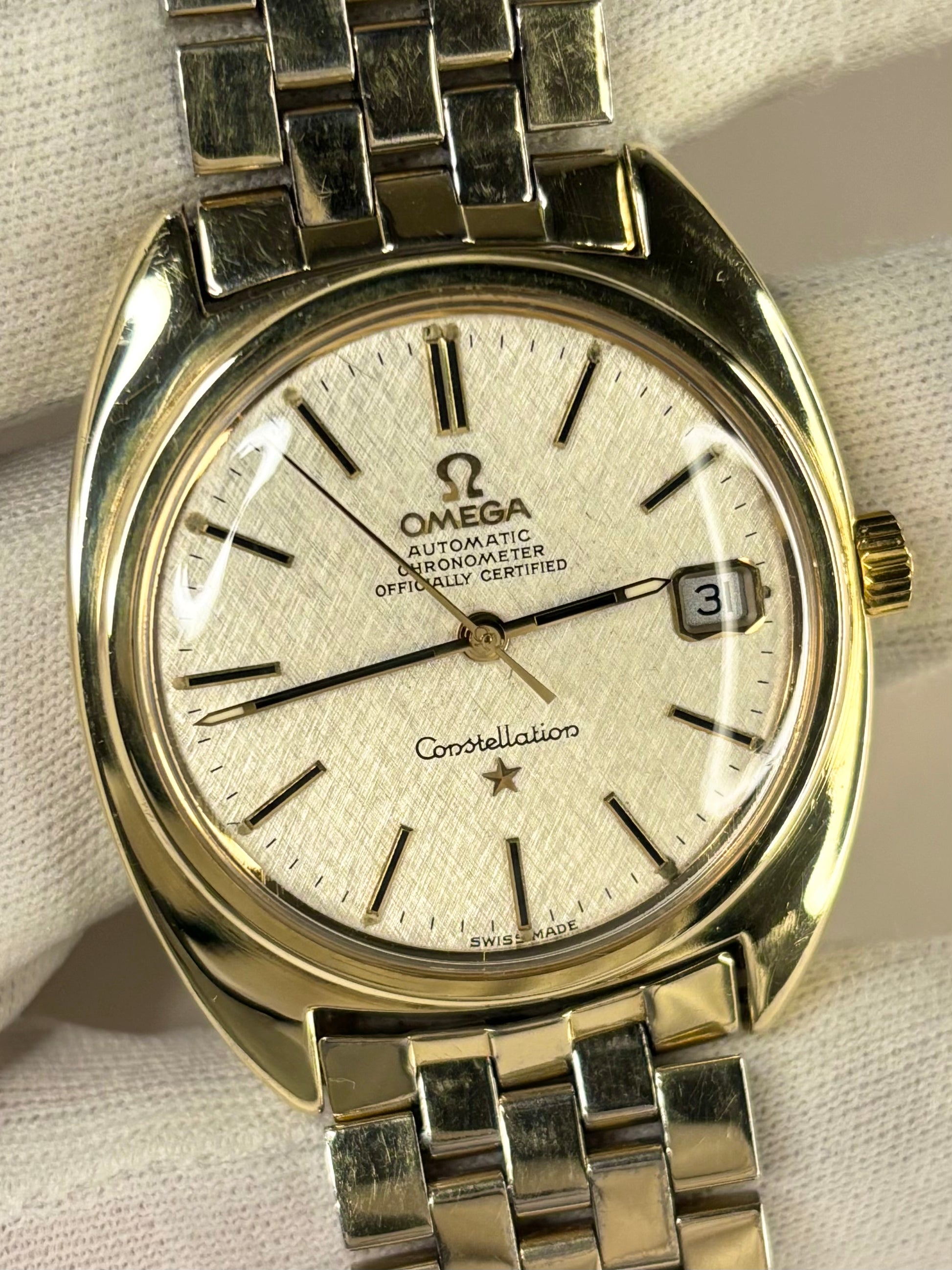 OMEGA Constellation *+BOX* Linen Dial Vintage 1970’s Men’s Automatic Gold Dress Watch - 168.017