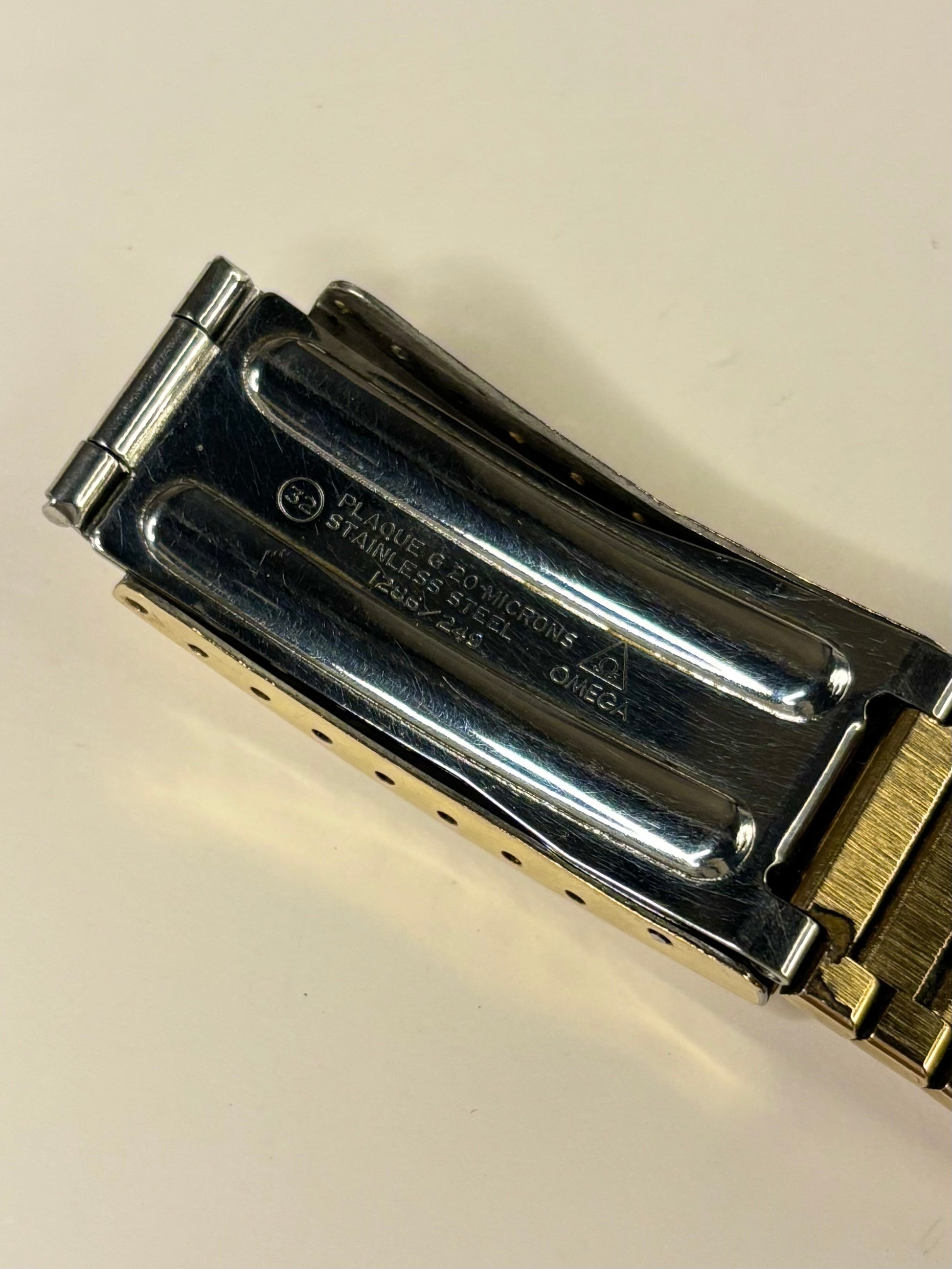 Here we have a gorgeous Omega watch from the iconic ‘Seamaster’ collection. As seen in the photos, both the gold-toned sunburst dial and the gold-plated case are in great, vintage condition. The Omega automatic movement is keeping superb time! This watch also comes with an original Omega box, and original gold-plated bracelet, which has undergone a minor repair to a pin connecting the clasp - see photos. Make this beautiful Omega Seamaster yours today!
