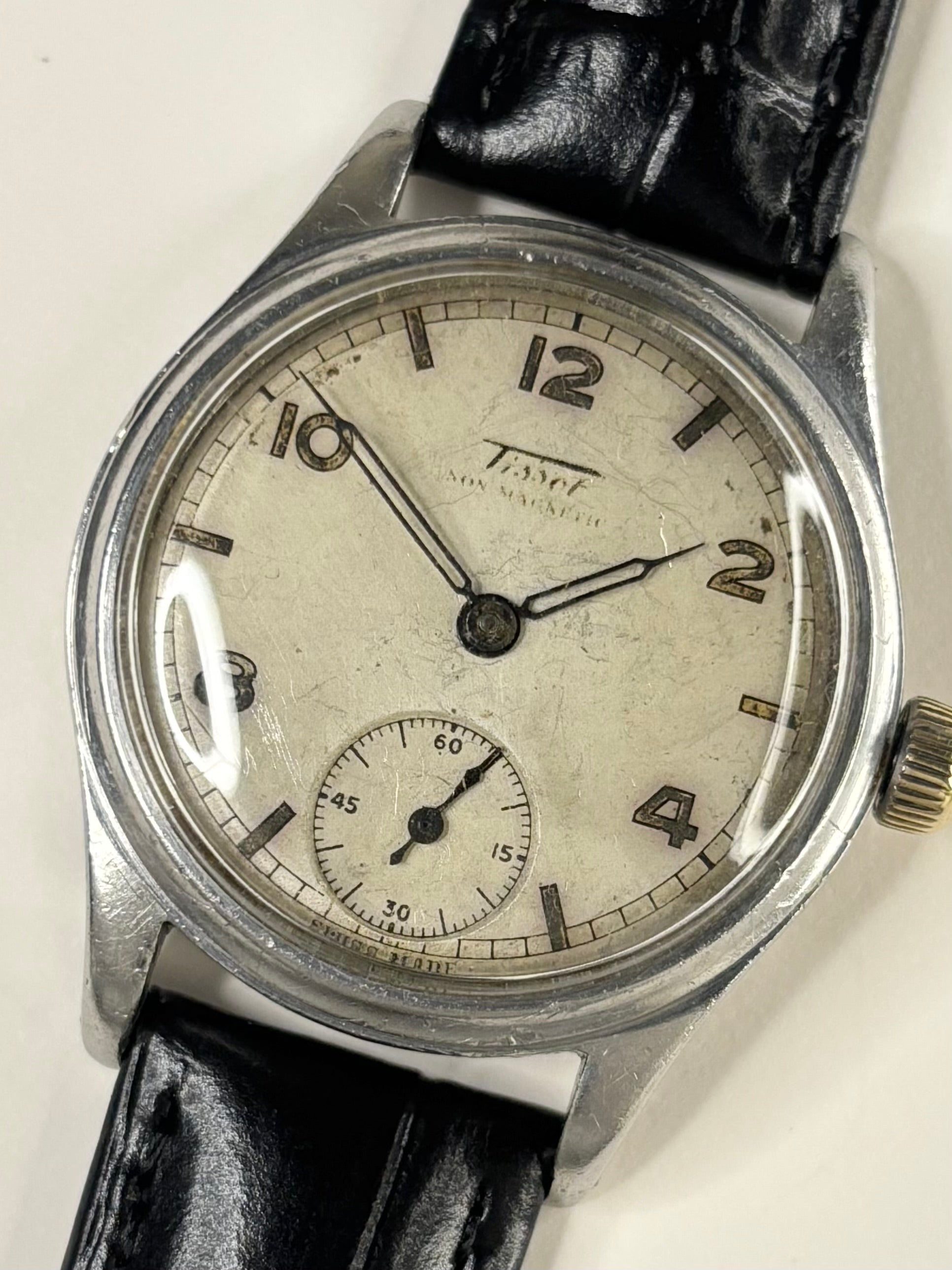 Here we have an incredible Tissot watch dating back to the 1940’s. As seen in the photos, both the dial and the stainless steel case are in good, vintage condition. The Tissot manual movement is keeping time to around 3 minutes over a 24 hour period. Make this incredible Tissot watch yours today!